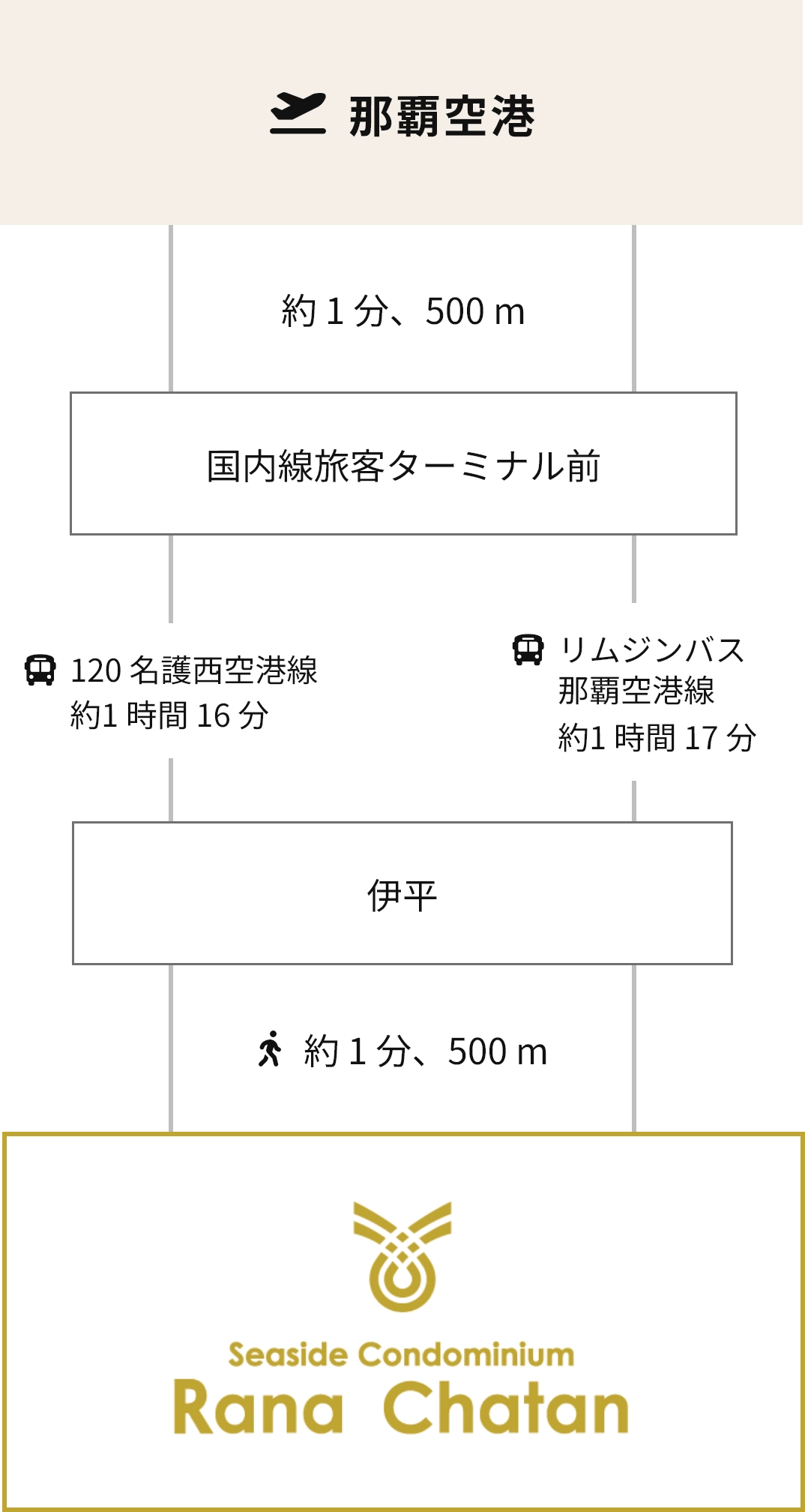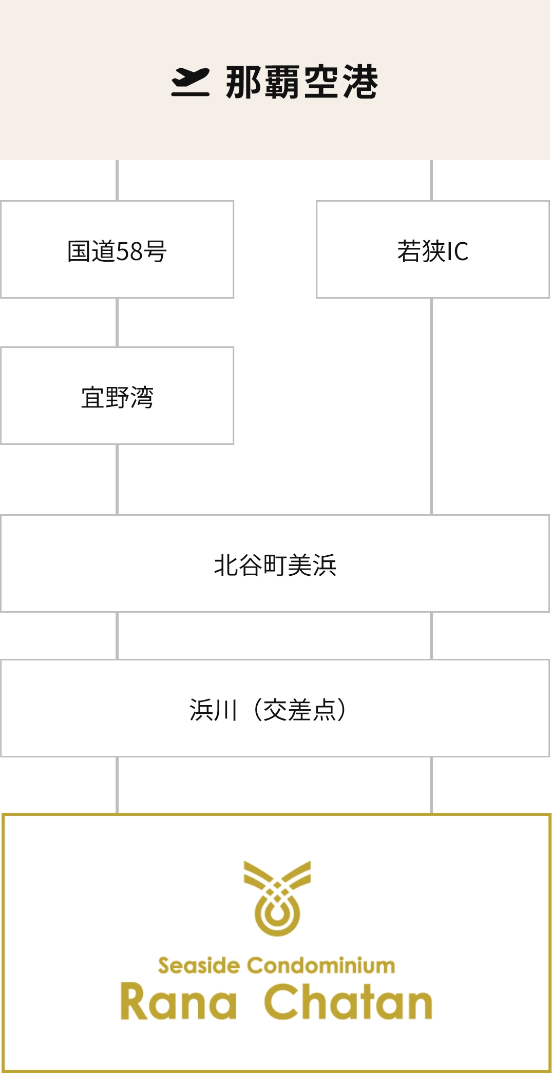 那覇空港から約35分、那覇市内から約40分でお越しいただけ、沖縄観光の拠点として最適です。