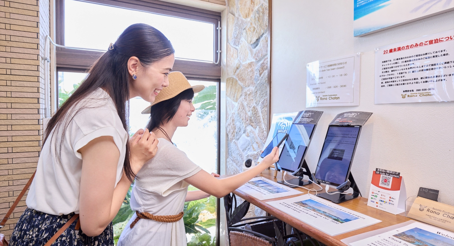 ホテルに設置されているチェックインタブレットをご利用ください。