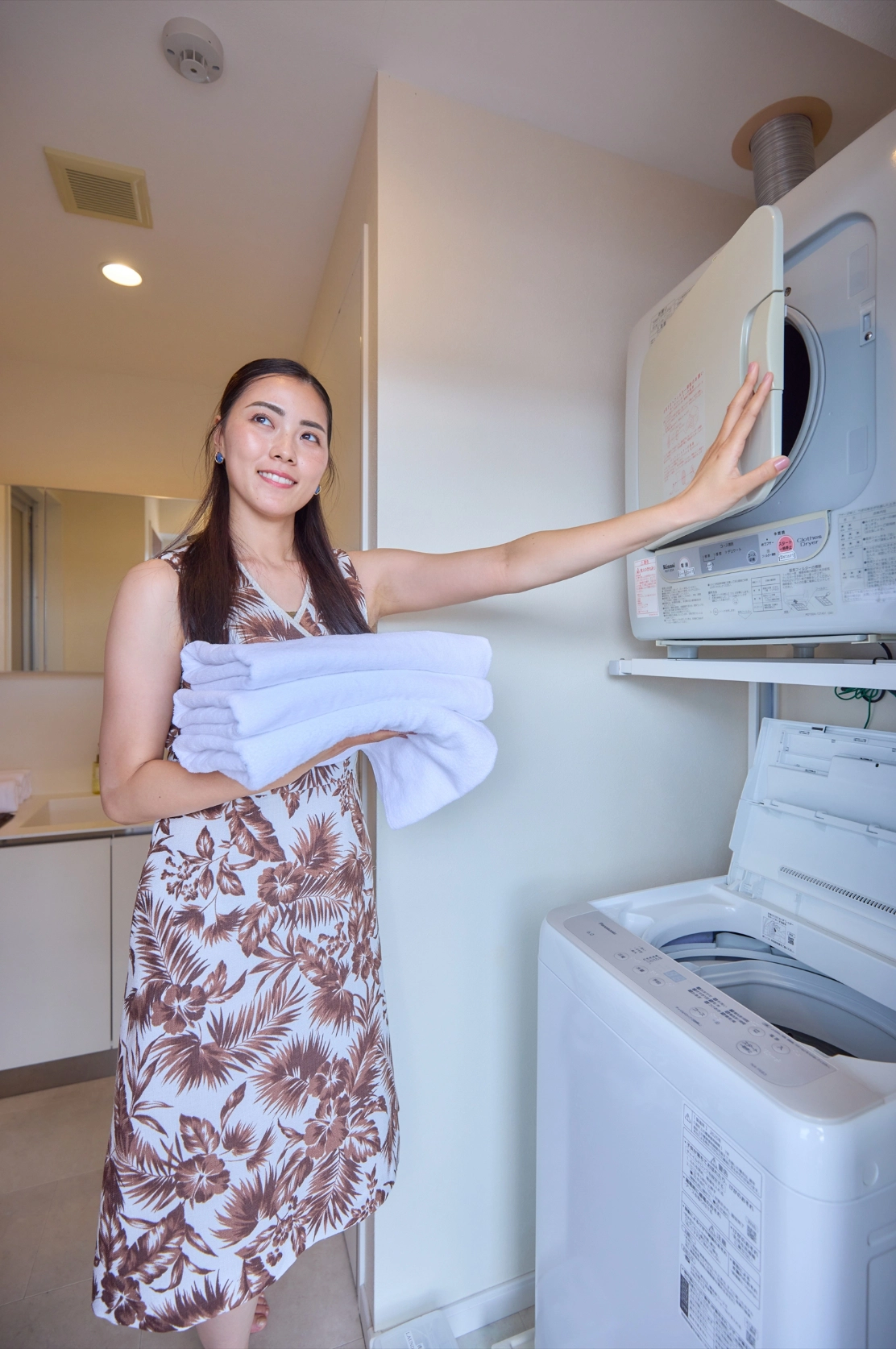 各客室に洗濯機・乾燥機を完備し、いつでも清潔で快適な滞在をサポート。荷物を最小限に抑えた身軽な長期滞在が可能で、まるで地元に住んでいるような自然な生活リズムを築くことができます。
